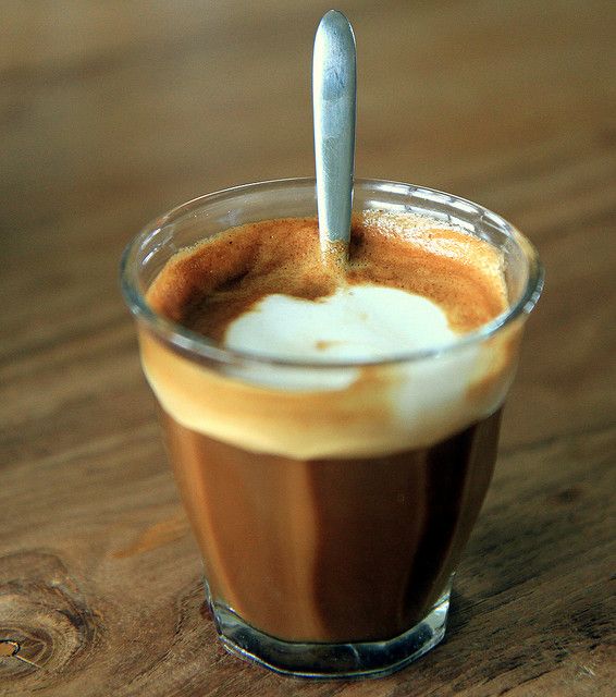 En France ce serait un café au lait ou un macchiato en Italie. Du café avec un nuage de lait (expresso avec lait). La même quantité qu’un cafe solo, auquel on y ajoute le lait par un mousseur à lait jusqu’à remplir la tasse.