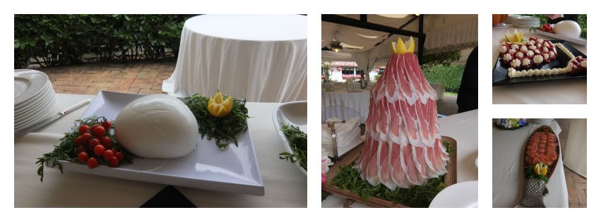 Pour ce mariage, j’ai été époustouflé! Tout d’abord pour attendre les mariés, des mises en bouches ont été servies. Une chose typique de Naples : des beignets de pizza fritta, de la pâte à pizza frite en beignets. Une fois les mariés arrivés, le personnel a procédé à la mise en place des Antipasti (appéritifs). Alors là je laisse les photos parler. Variété, présentation irréprochable, froid ou chaud, le tout servi en buffet sur la terrace, avec tablée à disposition. Evidemment les deux produits mis à l’honneur : le jambon de parme et la mozarella di buffala.