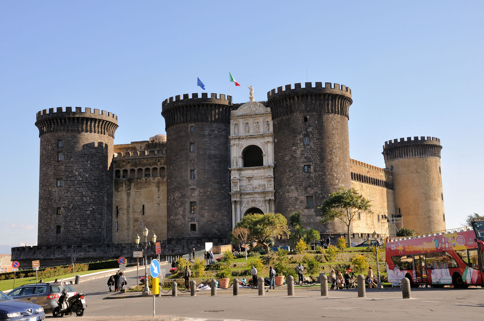 Notre couple d’amis s’est uni lors d’une cérémonie civile dans le Castel Nuovo. Le lieu protégé et avec vue sur la mer était idéale. La cour intérieure a permis à la famille des mariés de pouvoir organiser l’entrée dans la salle et une fois la cérémonie finie féliciter les mariés avec une certaine aise.