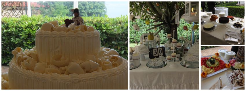Et tout mariage fini avec la coupe du gâteau nuptiale. Celui-ci avait sa touche napolitaine avec une figurine de Pulcinella, personnage type de la commedia dell’arte du théâtre napolitain. Le gâteau nuptiale était accompagné de salade de fruits, et autres douceurs…