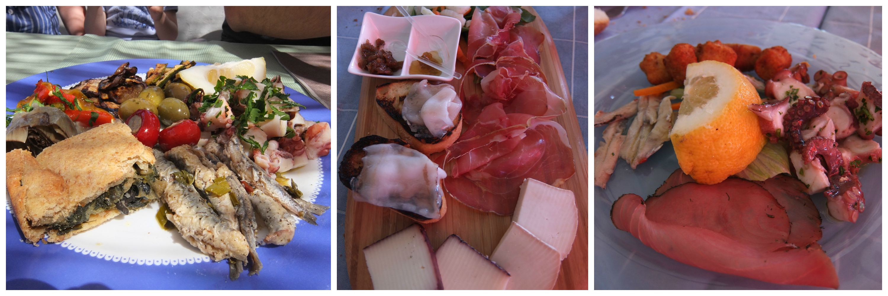 Un lido est comme une paillotte mais souvent avec une structure fixe. Même si ce lido ne payait pas une mine, la plage nous a attiré et nous avons décidé de lui donner une chance. Nous avons été étonnés de la qualité des produits: poulpe tendre, fromage de la région, sardines frites, coppa et prosciutto, Nous avons pris une assiette d’antipasti mixte et de simple plat de pâte en plat de résistance.